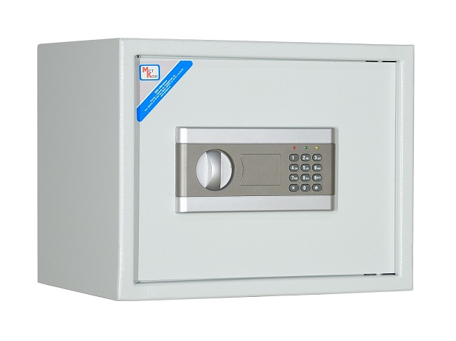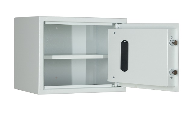 Шкаф мебельный ШМ-30Э предназначен для хранения бумажных документов, небольших денежных сумм дома, в гостинице, в офисе. Каркас изготовлен из высококачественной стали. Толщина стенок 1,2 мм, толщина двери 2 мм. ШМ-30Э оснащен полкой. В двери установлен кодовый электронный замок серии ЕА. На задней стенке корпуса расположены отверстия для крепления сейфа. Цвет светло-серый