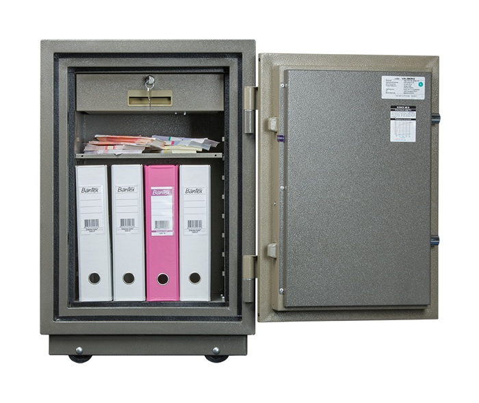 Сейфы серии FRS предназначены для сохранности документов и ценностей при пожаре Сертификат на огнестойкость – ГОСТ Р 50862-2005, класс 60Б При заливке двери и корпуса сейфа используется запатентованный состав огнестойкого бетона В конструкции применен тепловой замок, обеспечивающий огнестойкость в области притвора дверцы сейфа и препятствующий прохождению теплового потока Также периметр дверного проема оборудован огнестойким уплотнителем Сейф имеет ригельную система запирания В комплект поставки входят полка, кассовое отделение, пластиковые ножки и анкерное крепление к полу Установлен кодовый электронный и ключевой замок Внимание - испытание на огнестойкость проведено с анкерным отверстием!